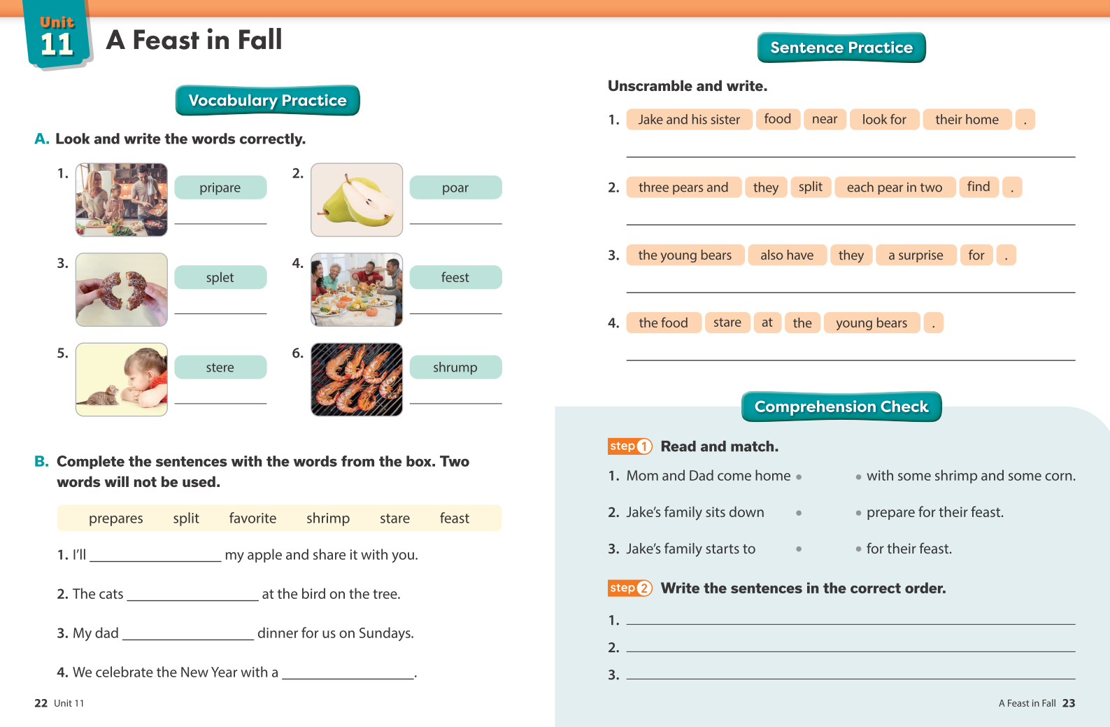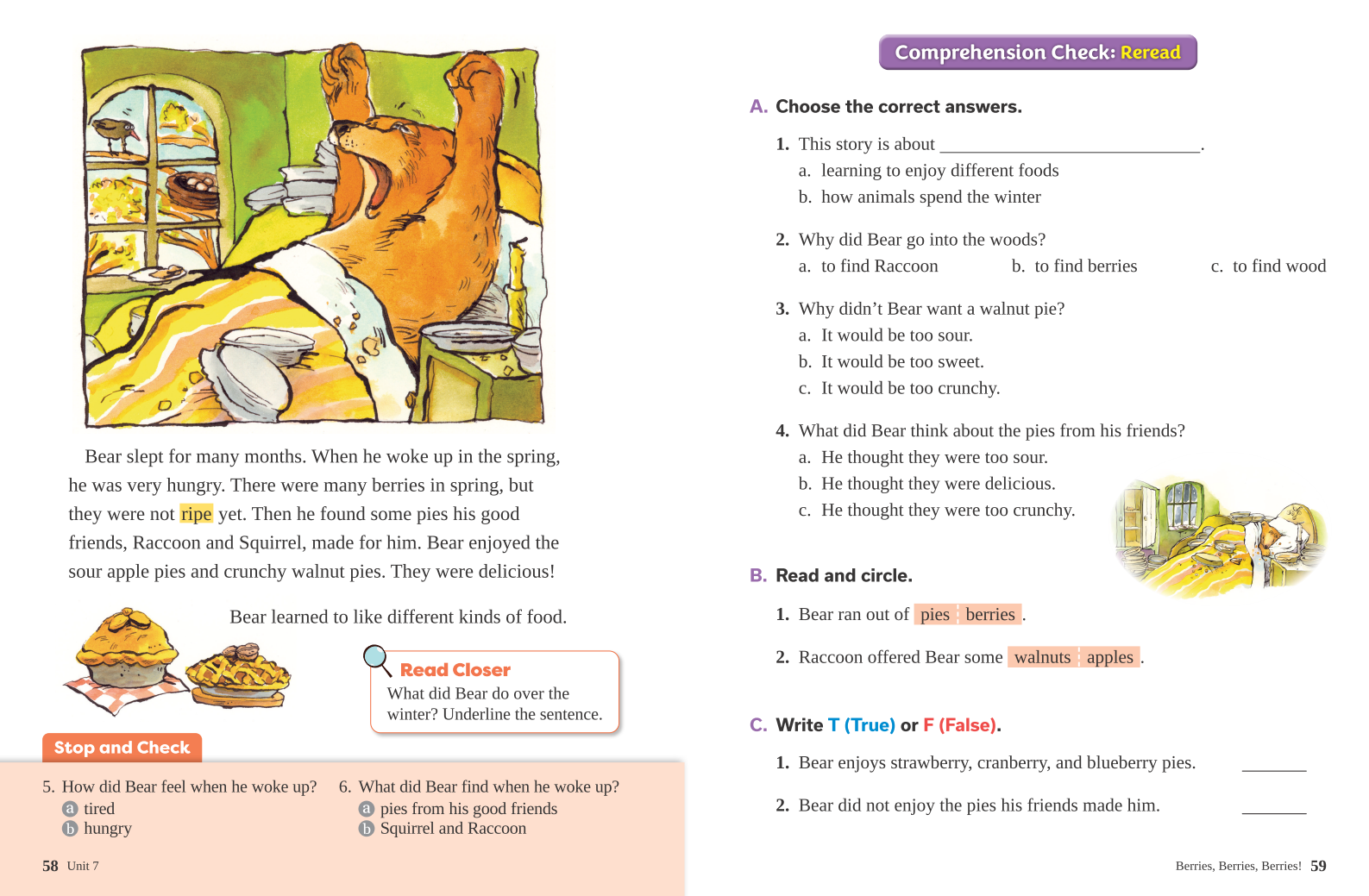 • Diverse comprehension problems are provided, aiding learners in accurately grasping the content through activities that require them to find Text Evidence within the main text.