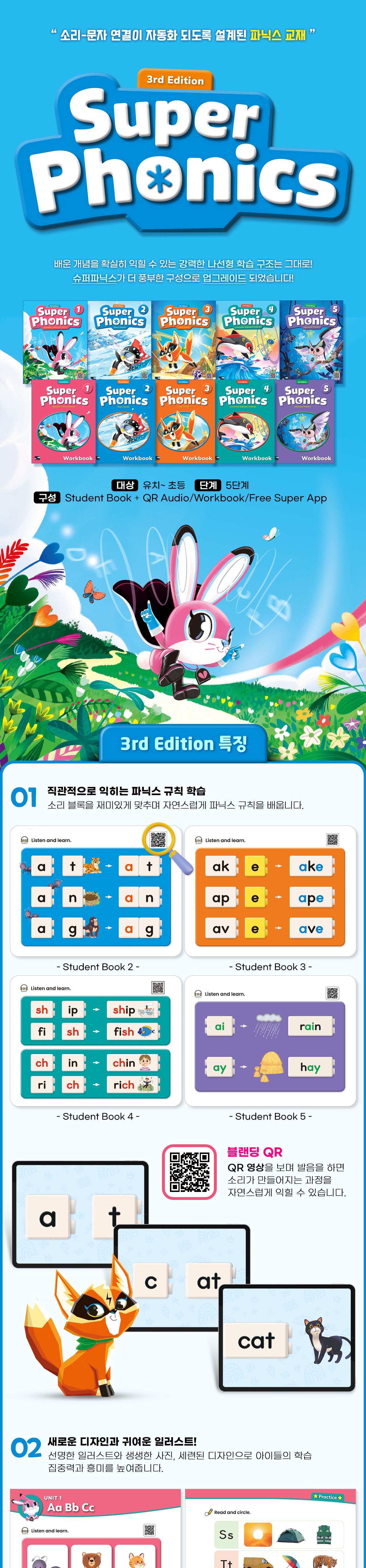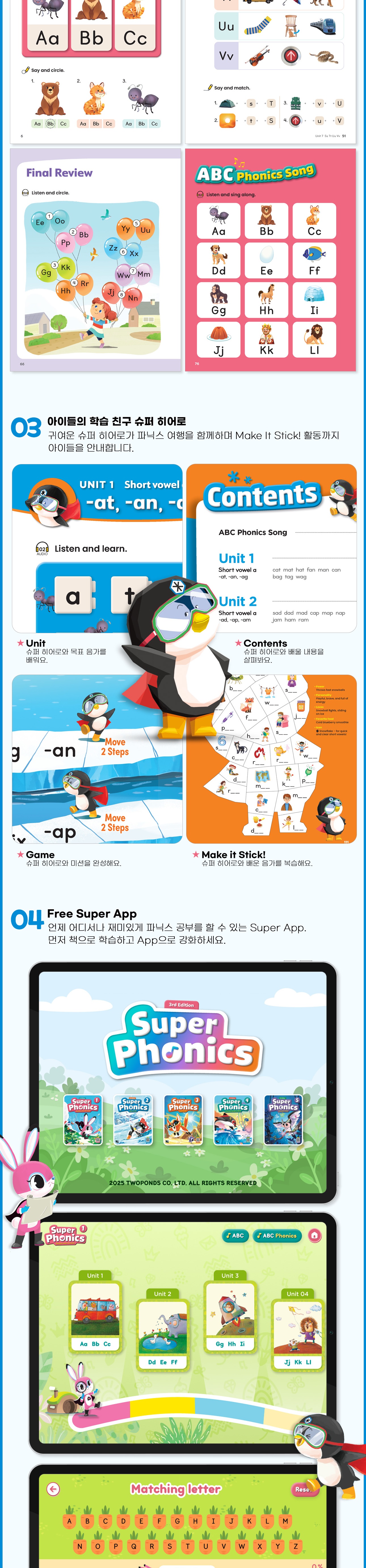 언제 어디서나 재미있게 파닉스 공부를 할 수 있는 Super App. 먼저 책으로 학습하고 App으로 강화하세요.